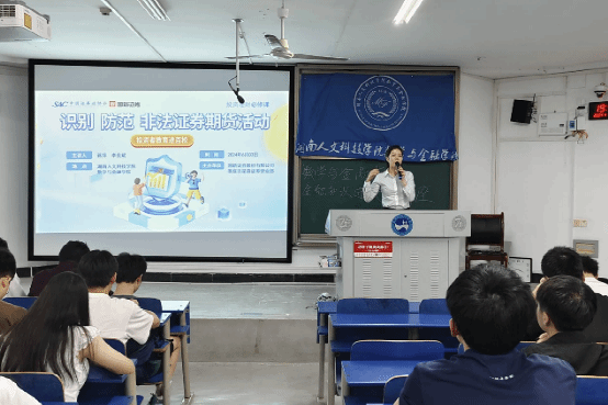 本次宣讲会由国新证券股份有限公司负责人蒋萍、李良斌和王友欢主讲。会上,蒋萍首先分析了大学生可能面临的金融风险和安全事项;李良斌为同学们详细讲解了关于金融投资的相关知识;王友欢讲解了如何防范电信诈骗、非法集资、校园贷等金融风险,以及如何保护个人信息和账户安全。同时,他还结合了大量实际案例,对金融诈骗的常见手段和特点进行了深入剖析,让在场学生深刻认识到金融安全的重要性。