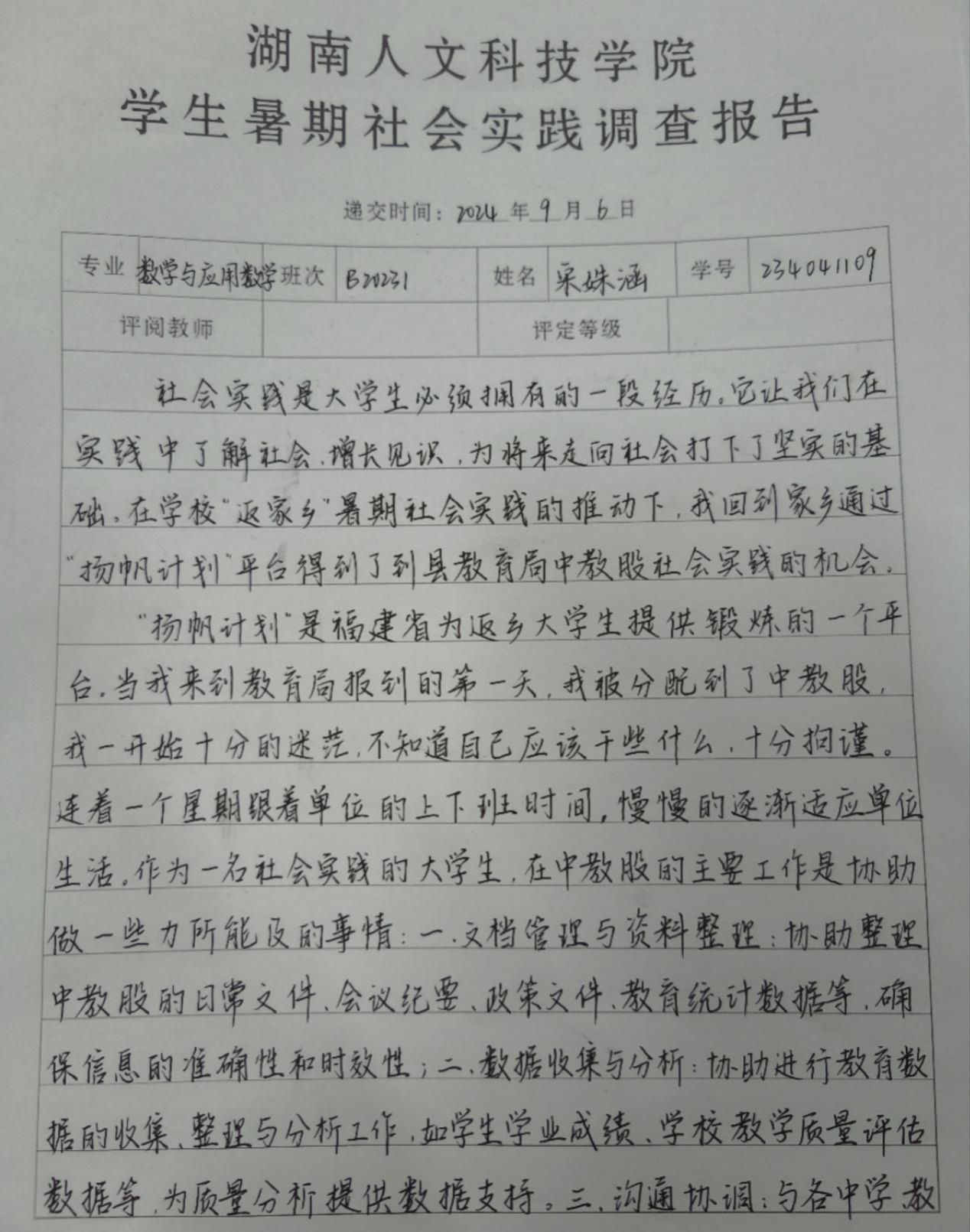 暑期社会实践活动作为同学们成长道路上的重要一环,不仅为同学们提供了锤炼能力、拓宽视野的宝贵机会,更在无形中培育了他们的团队精神和协作能力。同学们纷纷表示,暑期社会实践经历让他们受益匪浅,不仅增长了见识,更在实践中锻炼了自己的能力,为未来的学习与工作奠定了坚实的基础。