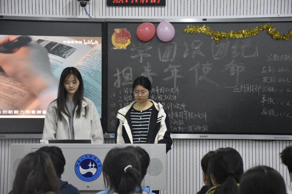团课中,《中国共产主义青年团章程》专题学习环节帮助团员们系统把握了共青团作为党助手和后备军的重要政治定位,明确了“全心全意为人民服务”的根本宗旨,深化了对新时代历史使命的认知。随后播放的《团徽的含义》教育短片以生动的视觉形式诠释了团徽的精神内涵:五角星象征党的核心引领,齿轮与麦穗寓意工农基础,初升太阳彰显青春力量。同学们沉浸其中,深刻体会到团徽背后的政治信仰与责任担当。