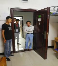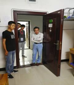 新生正式开课已有两天,陈院长亲切询问新生对大学课堂的适应程度,关注同学们寝室关系的处理情况,叮嘱同学们要自信,有理想有抱负,要认清自己并给自己设定一个适当的目标。陈院长还介绍了一下社团活动方面问题,鼓励我们积极的且适当的参加。高书记向同学们详细说明了寝室评分细则,针对扣分项目,逐一的指导同学们整理内务,督促同学们营造一个良好的生活环境和学习环境,同时明令禁止养宠物和使用违规电器,提醒同学们要注意人身财产安全、注意用电安全、防火防盗、节约用水等。老师们详细的登记了每个寝室出现的细节问题,由文建站干事汇总上报学工处。针对问题严重寝室,要求学生即可整改,将寝室整改完的全新模样拍照,直到复查合格。对于毕业班寝室,老师们还关切的询问了学生们的动向,对考研和实习均给予了一定的指导意见。院学生会干事们认真配合老师工作,全院全体学生也积极配合寝室检查工作。