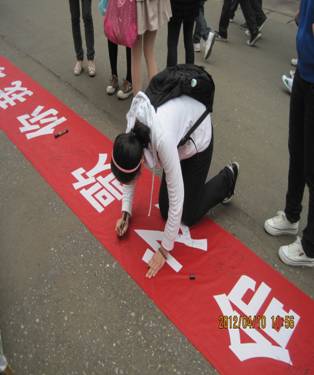 2012年4月10日,数学系团总支在校一食堂门前举办了以“生命之歌,你我颂行”为主题的大型募捐活动,为我系11级信技班陈新任同学募捐善款,来拯救患有尿毒症的脆弱生命。