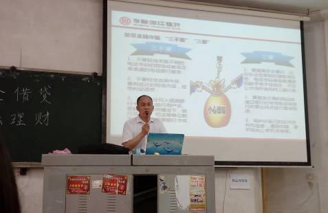 6月21日上午,由金融工程教研室、量化投资协会联合举办的“金融理财 安全借贷”主题宣讲活动于致远楼101顺利举行。共有来自各个学院的共100多人参将了此次宣讲活动。讲座由邓华老师主持。华融湘江银行周行长、董总、毛总到场进行指导,董总担任了此次活动的主讲。