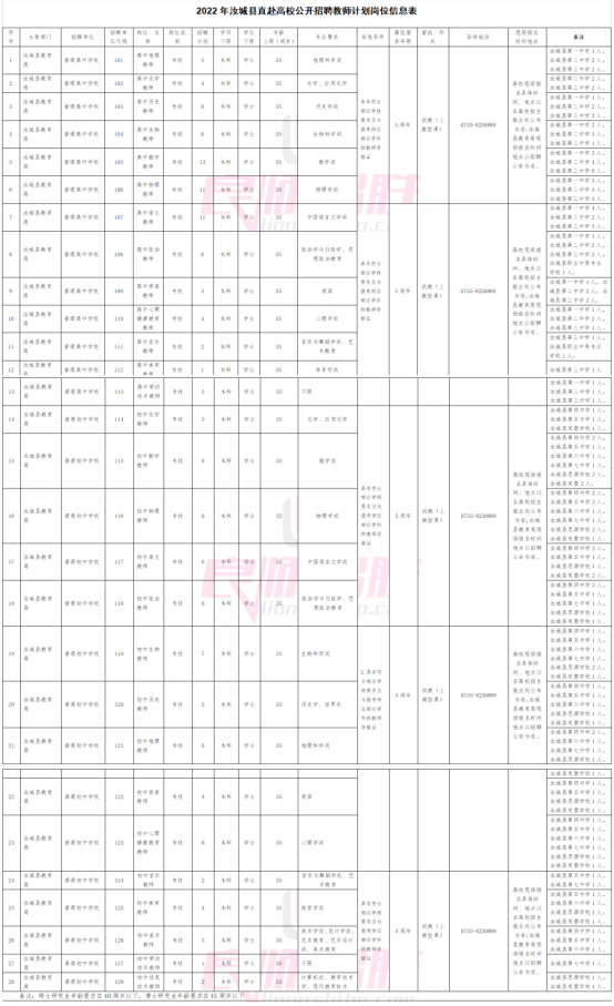 1.计划招聘教师150名,具体招聘岗位、计划数及资格条件等详如下。
