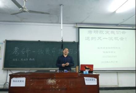 陈教授以“同学们,你们为什么要考研?”开始了他的讲座。陈教授指出:考研,是改变我们命运的另一次机会。如果说高考区分了不同的大学,定了文凭,那么考研则是另一次高考,再次洗牌命运,但是,考研又不同于高考,它凌驾高考之上,比起高考的必然它更像一次赌博,以大学这几年全部的时间为抵押,舍弃享乐,陷身书海,只为备考能够改变命运的考试。