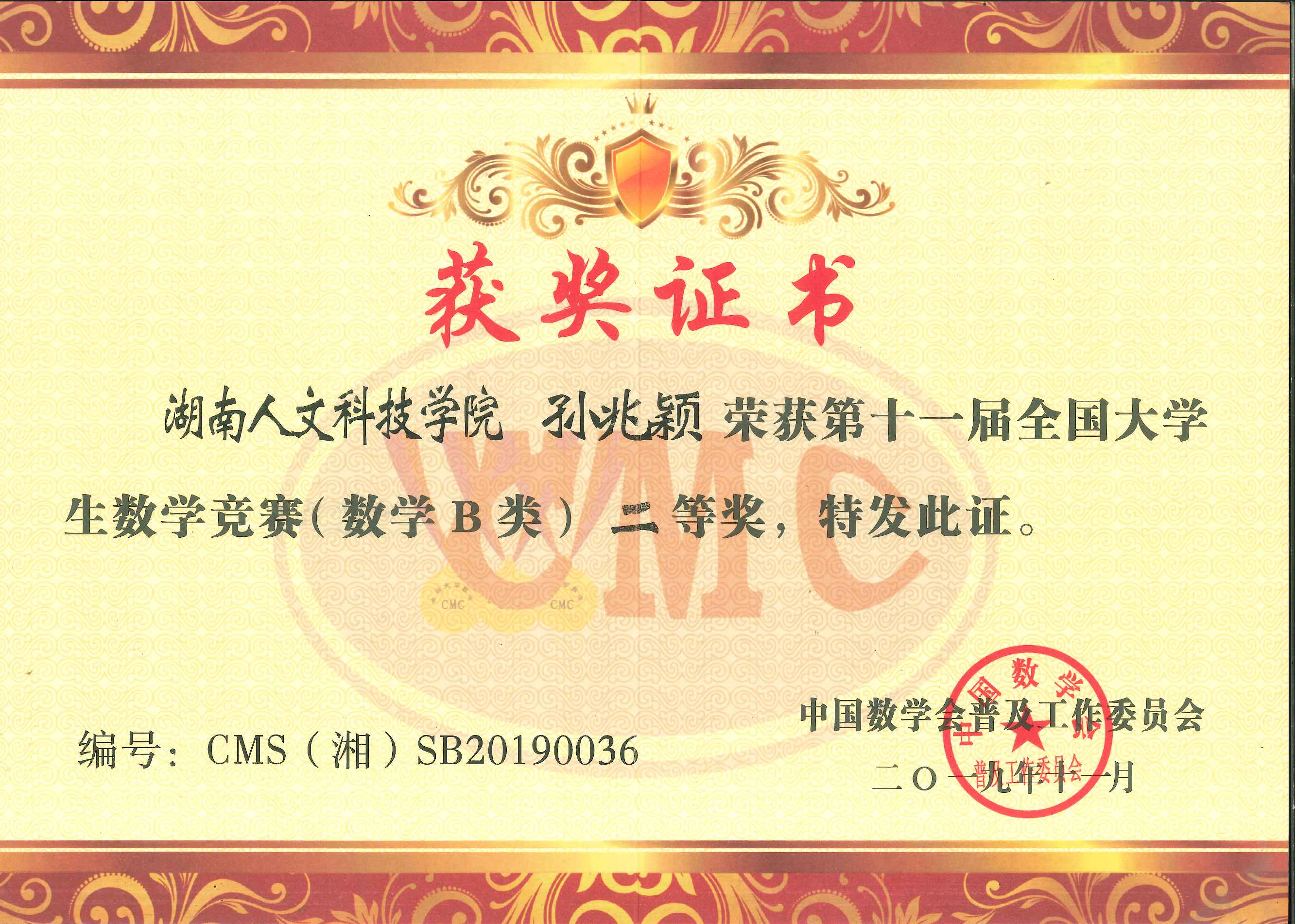 本专业学生在校期间可参加全国大学生数学建模竞赛、全国大学生数学竞赛、“挑战杯”全国大学生课外学术科技作品竞赛、中国互联网大学生创新创业大赛、湖南省普通高等学校师范生技能竞赛等省级以上学科竞赛,也可参加MATLAB程序设计竞赛、初等数学解题竞赛、实习生教学竞赛、课件制作竞赛、三笔字竞赛等学院举办的竞赛活动,其中全国大学生数学建模竞赛为本专业重点打造的学科竞赛。近年来,在全国大学生数学建模竞赛中共获得国家级奖励25项,其中国家级一等奖7项、国家级二等奖18项,总体成绩在湖南省二本院校中处于领先地位。