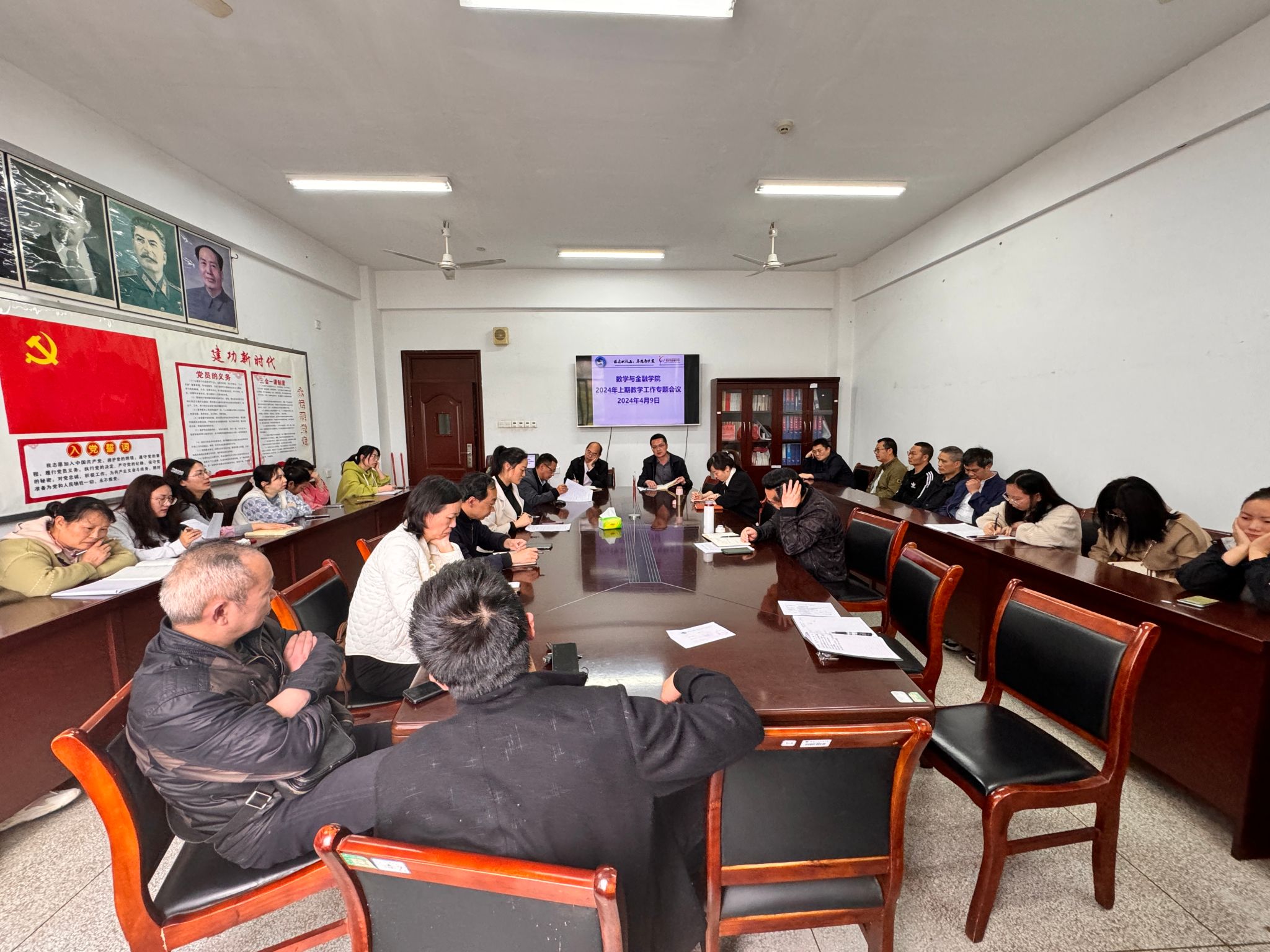 4月9日下午,数学与金融学院在致远楼605召开2024年上学期教学工作专题会议,学院全体教职工参加,院长李军成主持。