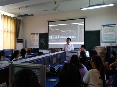 为了使学生更好的认知证券股票,了解看盘分析的基本操作,6月25日,KY官网有幸邀请了财富证券客户部经理谢伦良经理于若谷楼309机房为学生上了看盘分析操作的课程。