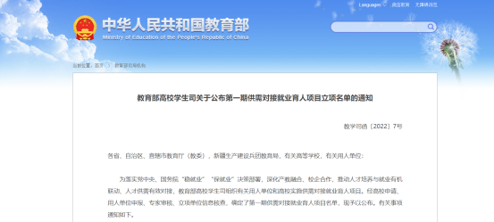 教育部高校学生司公布第一期供需对接就业育人项目立项名单