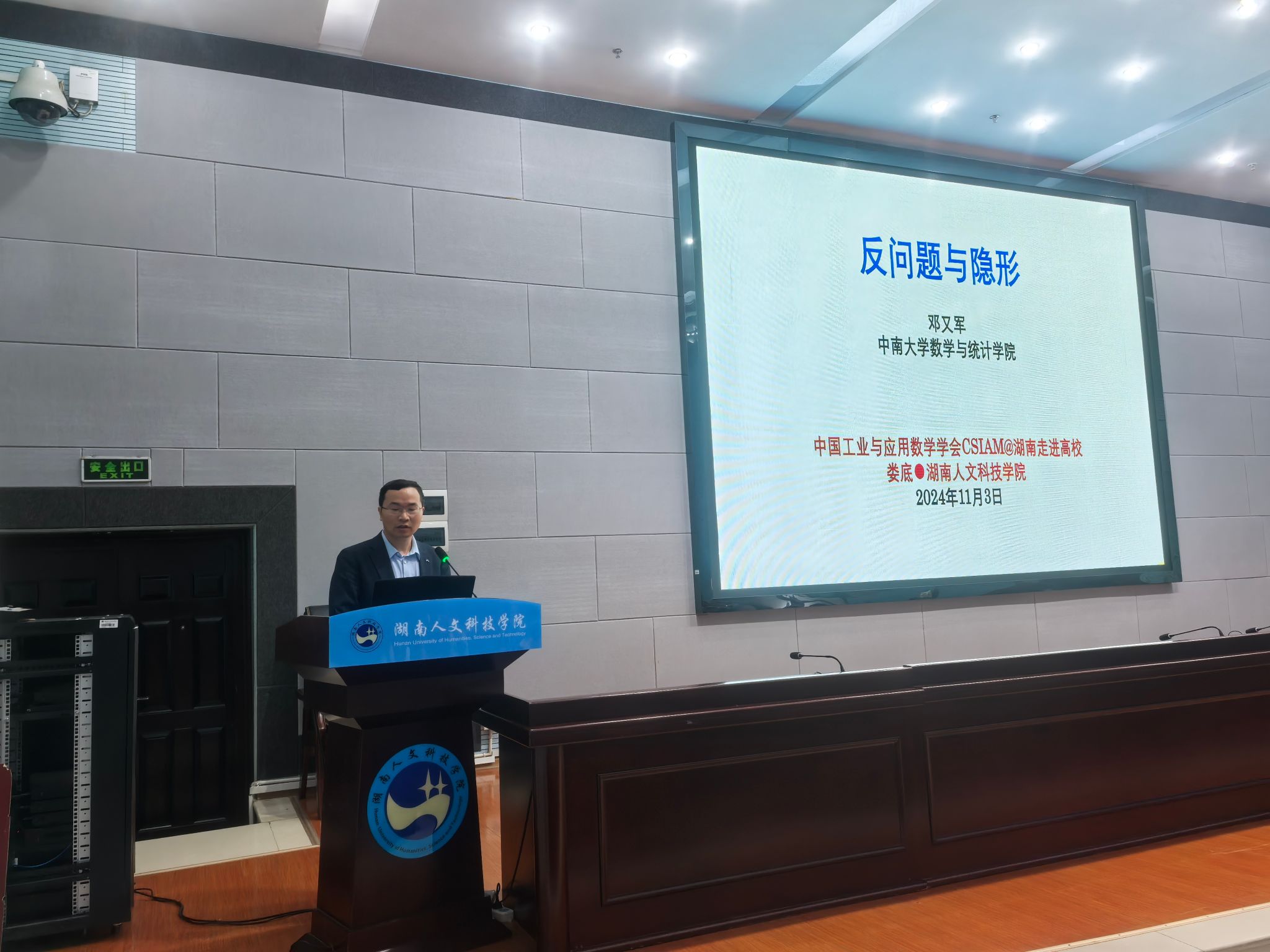 邓又军以“反问题与隐形”为题,介绍了实际生活中碰到的反问题和隐形的科学知识,并通过介绍自然界中存在的一些物理现象展示了人类应用相关科学思想创造实现相应功能设备的基本原理。