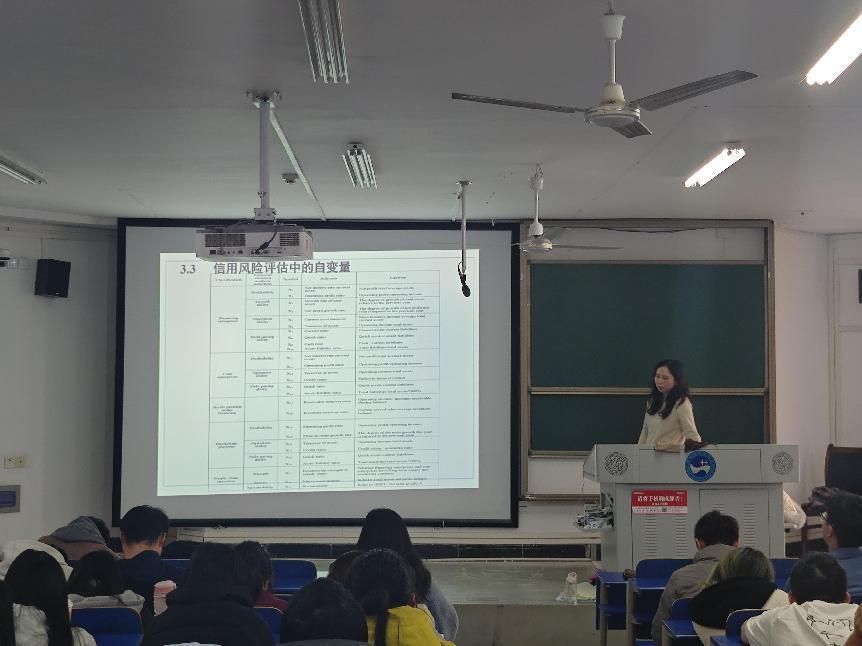 肖萍博士以《机器学习算法下区块链驱动供应链金融信用风险评估》为题,介绍了中小企业融资难的背景,引出供应链金融的概念,并解释了区块链在供应链金融中的作用以及所采用的统计方法和机器学习方法,为学生开展科学研究提供了思路和启发。
