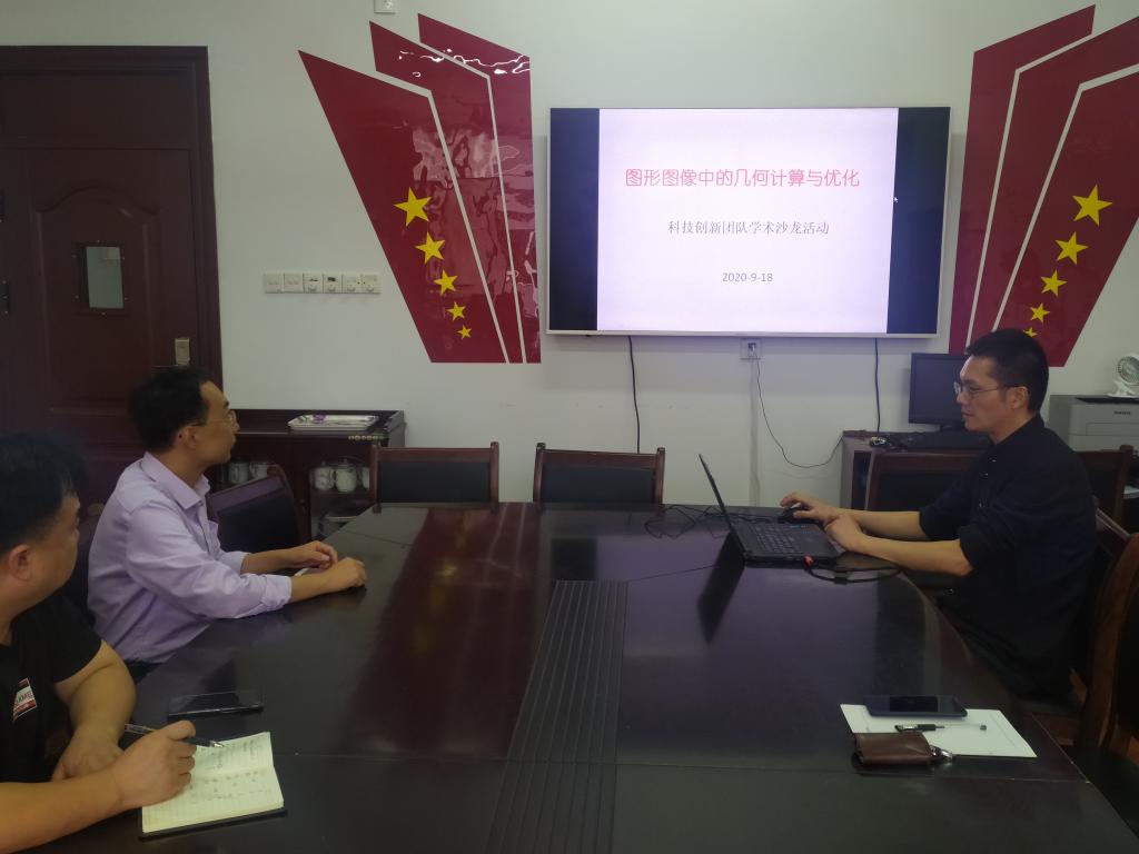 9月18日 ,学院“图形图像中的几何计算与优化”科技创新团队开展学术沙龙活动,活动由团队负责人李军成教授主持,团队部分成员参加。