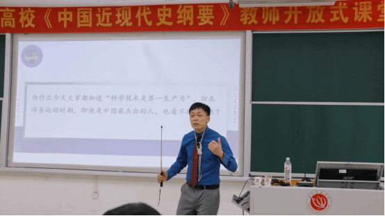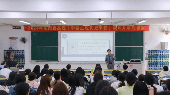 为进一步加强湖南省思想政治理论课建设,4月19日下午,学科骨干谢科峰博士赴长沙师范学院开展“洋务运动再认识”主题讲座。本次讲座是由湖南省委教育工委组织,长沙师范学院承办的《中国近代史纲要》开放式课堂。开放式课堂是一种创新的教学理念和方法,旨在为学生提供一个更加自由、多元化的学习环境。来自湖南师范大学,湘潭大学,湖南农业大学等省内30多所高校教师及学生现场观摩。