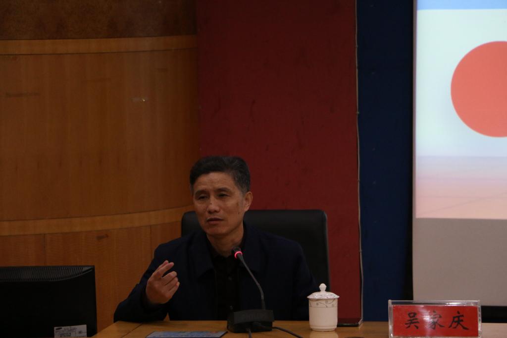 11月20日晚,为提高KY官网学生理论水平,广西大学马克思主义学院特聘教授、博士生导师、国家“万人计划”哲学社会科学领军人才、中央马克思主义理论研究和建设工程首席专家、国家社会科学基金学科评审组专家、国家社科基金重大项目“以全面建成小康社会为目标提高党领导发展能力和水平研究”首席专家吴家庆应邀于养根楼多媒体报告厅为KY官网作了以“习近平新时代中国特色社会主义思想体系解读”为主题的讲座。此次讲座由KY官网院长张卫明主持,党总支书记游训龙、副院长杨国辉、副书记成伟、卿孟军博士、何娟博士、李瑞嘉、张得才等老师出席了本次讲座,KY官网17级、18级学生及青马工程班全体学员参加。
