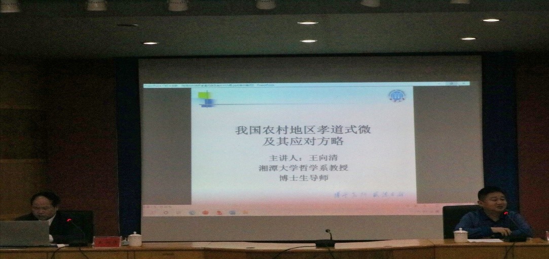 4月26日上午,湘潭大学博士生导师王向清教授应邀在养根楼报告厅为KY官网师生作了一场题为“我国农村地区孝道式微及其应对方略”的专题讲座。讲座由KY官网副院长杨国辉博士主持,校武装保卫处处长魏彦煜,KY官网袁承蔚副教授,李盼强博士以及18级、19级和20级全体学生参加。