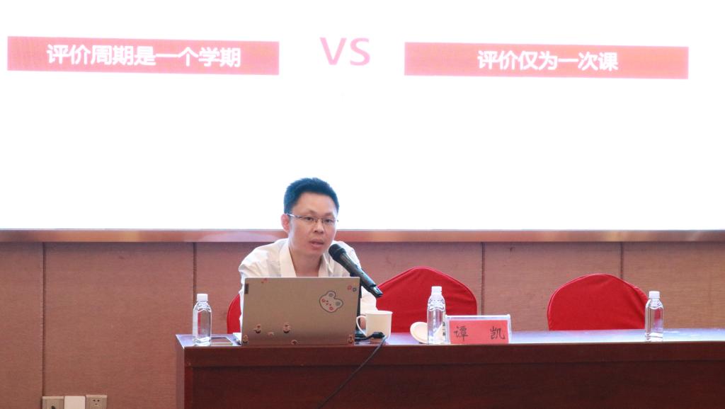谭凯教授围绕近几年的思政课赛事、教学与竞赛的关系、竞赛技巧三个方面开展讲座,他首先提出自2009年来我国思政课赛事不断增加,发展方兴未艾,指出思政课迎来了“新时代”,这为推进思政课程的建设提供了条件与机遇。随后,谭凯教授从时长、内容、结果、评价周期、对象五个方面辨析了教学与竞赛的区别,又提出教学与竞赛的联系是“竞赛从日常教学中来,又高于日常教学”。谭凯教授还深入浅出地分析了思政课竞赛的技巧,提出选题要从重、难、疑、热中寻找;要融入最新的科研技巧;要展示自身的优势,指出教学内容要高于教材、要有完整的知识点。