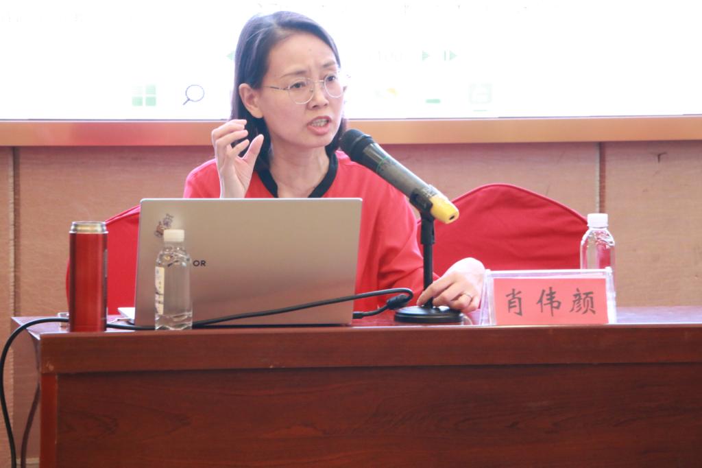 肖伟颜所长围绕科研课题的分类与评审、科研课题的选题与命题、科研课题的申报与论证三个方面开展讲座,她明确指出科研课题研究对于初中思政课教师并不遥远,科研课题研究是青年骨干教师必不可少的本领。随后,肖所长强调选题的重要性,从来源、注意要点、结构等方面来讲述如何选好课题,明确提出选取课题要大处着眼,小处着手,将社会焦点、热点与个人经验相结合,寻找空白点,注意课题的创新性。肖所长结合课题申报论证书的构成部分深入浅出地讲解了如何撰写课题申报论证书的内容,重点讲解了撰写现状述评的方法与要求,此外还总结了填写课题申报论证书的注意事项。