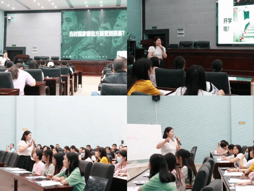 活动伊始,娄底市第一中学附属实验学校教师、湖南省思政课竞赛一等奖获得者万芬主讲题为《国家好,大家才会好》的示范课,万芬老师主要采用对比和互动的方法来推进课堂,她首先将阿富汗孩子的生活状况与娄底附属一中孩子的生活状况作对比,导入“国”字的概念,引导学生们理解国家好的重要性。她利用短视频、小游戏等方式,激发学生学习国家利益与国家核心利益的内容,提出“为什么国家越来越好”的问题,引发学生的思考与讨论,得出“国家利益与每个人民息息相关”的结论。示范课后全体学员前往若谷楼就万芬老师的课堂进行分组研讨,研讨结束后四位学员代表就各组研讨情况做了专题发言,他们一致认为万芬老师在教学过程中语言亲切,案例贴近生活,教学重难点突出,不仅传授了知识,更是培养了学生的爱国情怀,真正落实了立德树人的根本任务,同时也提出了一点优化课堂的建议。