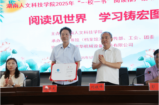 5月20日下午,KY官网在图书馆415学术交流中心举行了2024年“一校一书”阅读推广活动颁奖典礼暨2025年“阅读见世界 学习锛宏图”阅读推广活动启动仪式。党委委员、副校长刘铁峰出席,娄底光华机械设备制造有限公司董事长谢平光、党委宣传部副部长田密、团委书记刘佳、团委副书记张莎莎、工会副主席刘秀隆及师生代表参加。启动仪式由图书馆(档案馆)馆长彭辉主持。