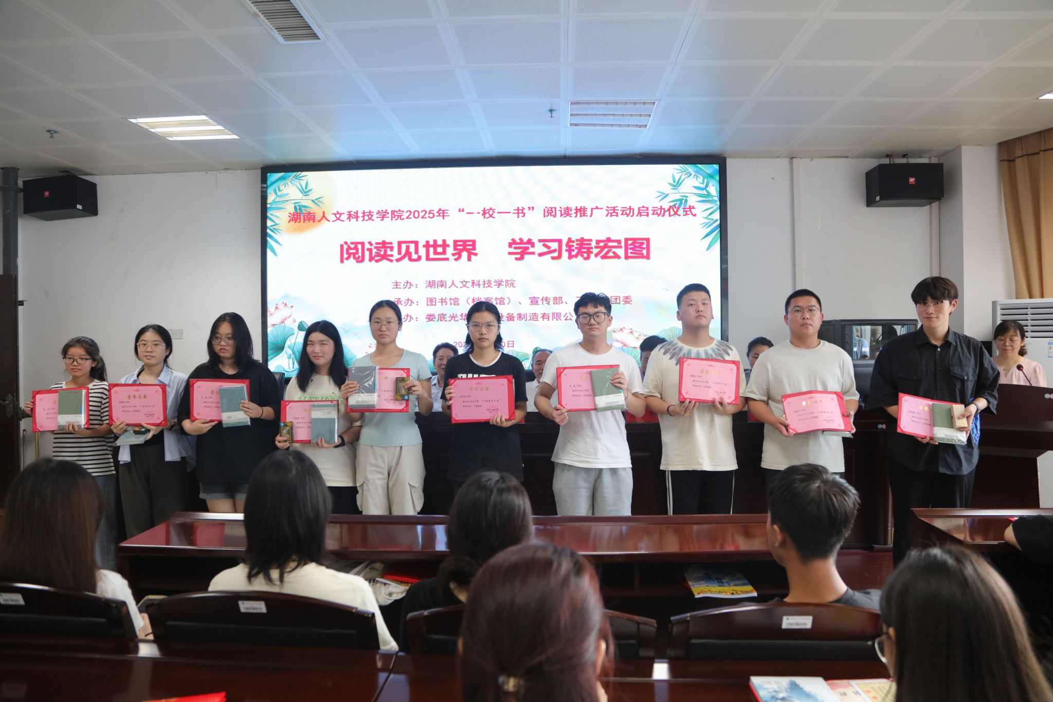 图书馆(档案馆)副馆长申彦舒宣读了2024年“一校一书”阅读推广系列活动获奖名单。会上,对获湖南省教育厅优秀读书报告奖的学生、学校“一校一书”阅读征文、第十届文学名著电影欣赏节影评书评征文、“十佳借阅之星”等获奖单位和个人进行了表彰。来自文学院2022级汉语言文学专业蒋建丰同学作为学生代表发言。