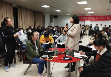 读书给人以乐趣,给人以光彩。2018年11月9日晚上7:30,第23期真人图书馆在图书馆415学术交流中心隆重举行,本期三本真人图书分别是KY官网优秀教师彭玲博士,2018年“一校一书”有奖征文一等奖获得者欧玉珠同学,刘泽宇同学,她们与来自全校的100余名学子一起分享了阅读《白鹿原》的感想和收获。图书馆的吴俊英副馆长、刘时容老师参加了此次活动。