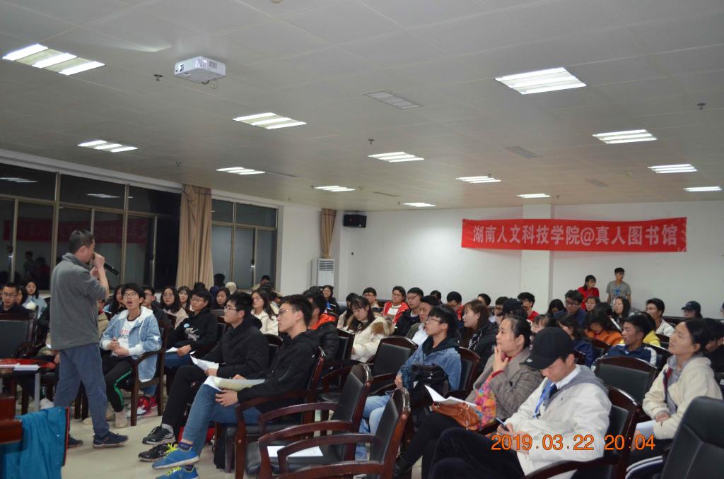 2019年3月22日晚7:30,第25期真人图书馆活动在图书馆415学术交流中心举行,信息学院的唐海波老师和软件工程专业的陈喜平同学与全校的90余名学子一起,分享了他们的科研经历与IT兴趣。