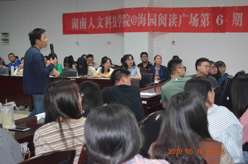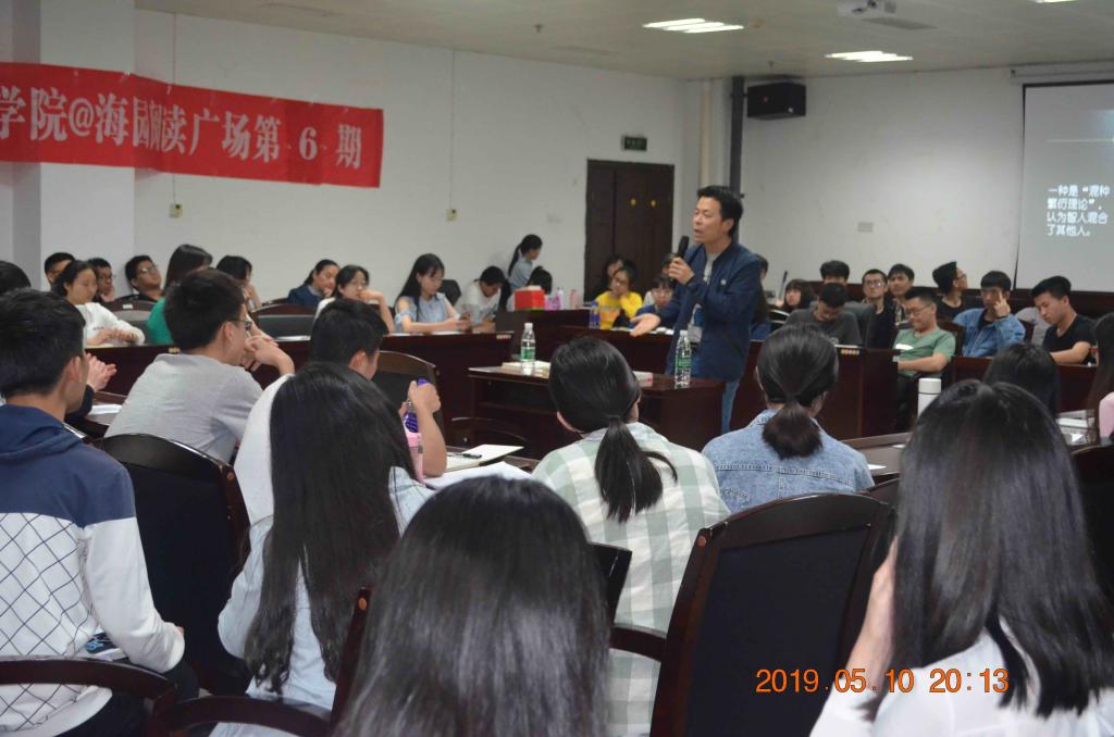 2019年5月10日晚上7:30,由KY开元集团官网入口图书馆主办、读者俱乐部和青马读书会共同承办的第6期海园阅读广场之海园开卷活动在图书馆415学术交流中心举行,马克思主义学院的谢科峰老师与来自全校的110余位学子一起分享了历史学经典《人类简史》。