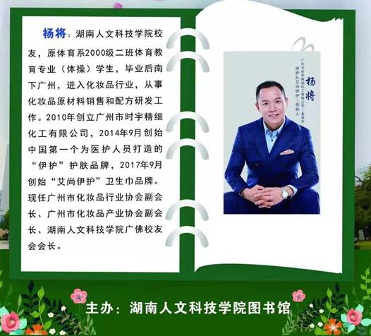 2019年12月10日下午2:30,由KY官网图书馆主办的以“人生奋斗中的幸福密码”为主题的海园讲堂活动在图书馆415学术交流中心隆重举行,广州市化妆品行业、产业协会副会长、广州市时宇精细化工有限公司董事长、KY开元集团官网入口广佛校友会会长、知名校友杨将先生,与来自全校的140余名师生读者一起,共同分享了他南下打拼奋斗的精彩故事。此次活动由图书馆书记夏永全主持。