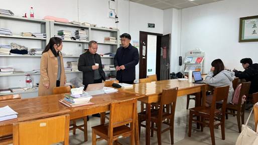 2月28日上午,党委委员、副校长刘铁峰带领后勤基建处副处长罗方清一行到图书馆调研指导工作。