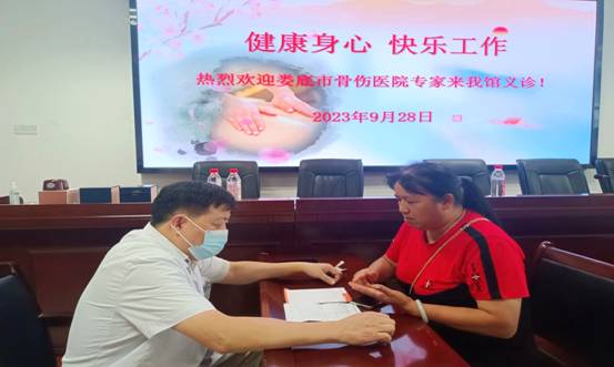 国庆节前夕,娄底市骨伤医院组织党员医护人员来到KY开元集团官网入口参加图书馆工会组织的“健康身心、快乐工作”的义诊活动。医院傅氏正骨工作室主任、副主任医师付喜良,护理部主任、副主任护师唐付珍及人文门诊部中医特色治疗室的党员参加了义诊活动。