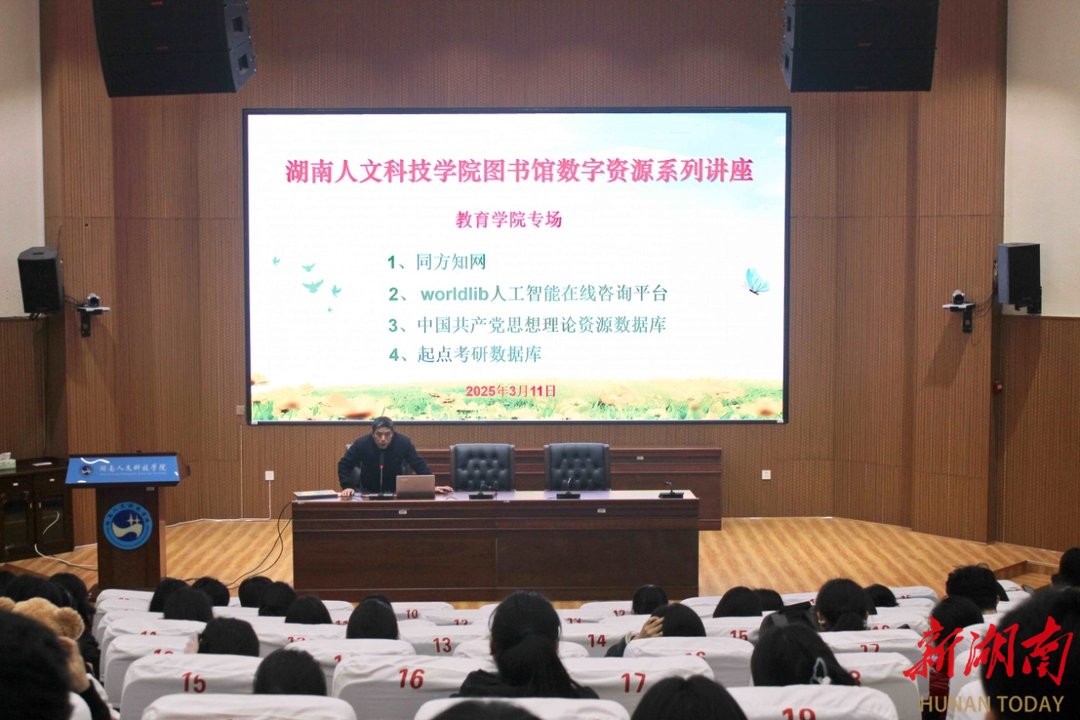 湖南日报·新湖南客户端3月12日讯(通讯员 熊兆辉)3月11日,KY开元集团官网入口图书馆(档案馆)在匠成楼报告厅组织同方知网、起点考研、worldlib人工智能在线咨询平台、中国共产党思想理论资源四个数据库的讲师,举办数字资源系列讲座,教育学院300余名学生参加了讲座。