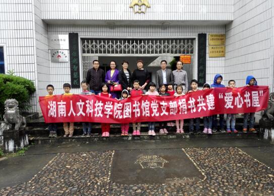 4月26日,图书馆党支部成员在夏永全书记、周月朗馆长的带领下冒雨驱车前往涟源田心坪参加‘爱心书屋’共建活动。夏永全书记、吴俊英副馆长亲切的和当地读者进行交流互动。“爱心书屋”谭馆长告诉我们,现在这里已经被纳入涟源市公共图书馆的一部分。在各界爱心人士的帮助下,“爱心书屋”越来越温馨,成为当地村民特别是留守儿童的好去处。夏永全书记表示,我们将一如既往的支持“爱心书屋”的共建工作。(文周浩鹏)