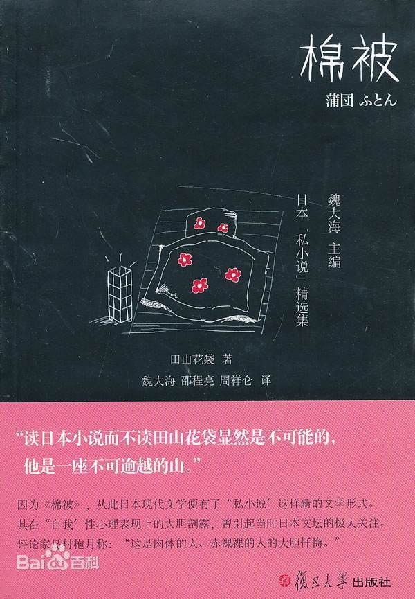 作品以作者自己与女弟子冈田美知子的关系为素材,如实地记录了作家的亲身经验,“把自己直截了当地暴露出来”。它以细致地描写身边琐事,精细地刻画内心感受见长。时雄感情与理智的冲突,通过酗酒、把脸贴在芳子盖过的棉被上嗅吸女性的气息及忍着悲痛让芳子父亲把芳子领回去等情节,表现得淋漓尽致。《棉被》是日本第一部“私小说”(专写身边琐事的一种小说),对后世影响极大。