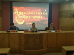 本站讯(王嘉文丁良)2016年10月9日晚19点30分,学生社团联合会(简称“学社联”)和校团委在养根楼报告厅召开新学期“学生干部见面会”,团委魏彦煜书记、刘晔副书记以及团委专干老师刘佳出席了本次会议。