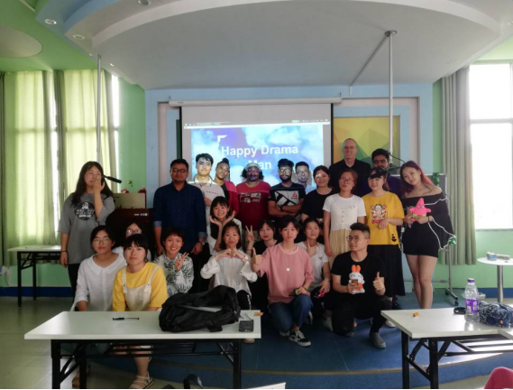 决赛主题:欢乐话剧人,第一组话剧主题:Snow White,第二组:Oh my friends,第三组:The gifts,第四组:Little Red Riding Hood。决赛要求:时间控制在8-10分钟,交流生与社干会帮助部分小组演出 要求组内每个人都有参与演出,并且全程英语口语表达,评委将根据团队表演的口语表达能力、团队配合度、表演是否有创意来决定最后的获胜者。另外,我们有抽奖环节。每个人有一个编号,每两组表演完,主持人在。台上从箱子中抽两个号码送两个玩偶。比赛过程中,参赛选手们都个个精神饱满,以流畅的口语和丰富的肢体动作充分诠释自己的角色,赢得了观众的阵阵掌声。从各自的着装以及感情充沛的口语可以看出参赛选手的准备十分充足。想必是被当场气氛感染的。评委也对选手们的表演进行了点评。此次比赛给同学们提供了一个展现自我、提升自我的舞台和机会;增进了彼此之间的交流,传递了快乐; 增强了参赛选手的自信心。
