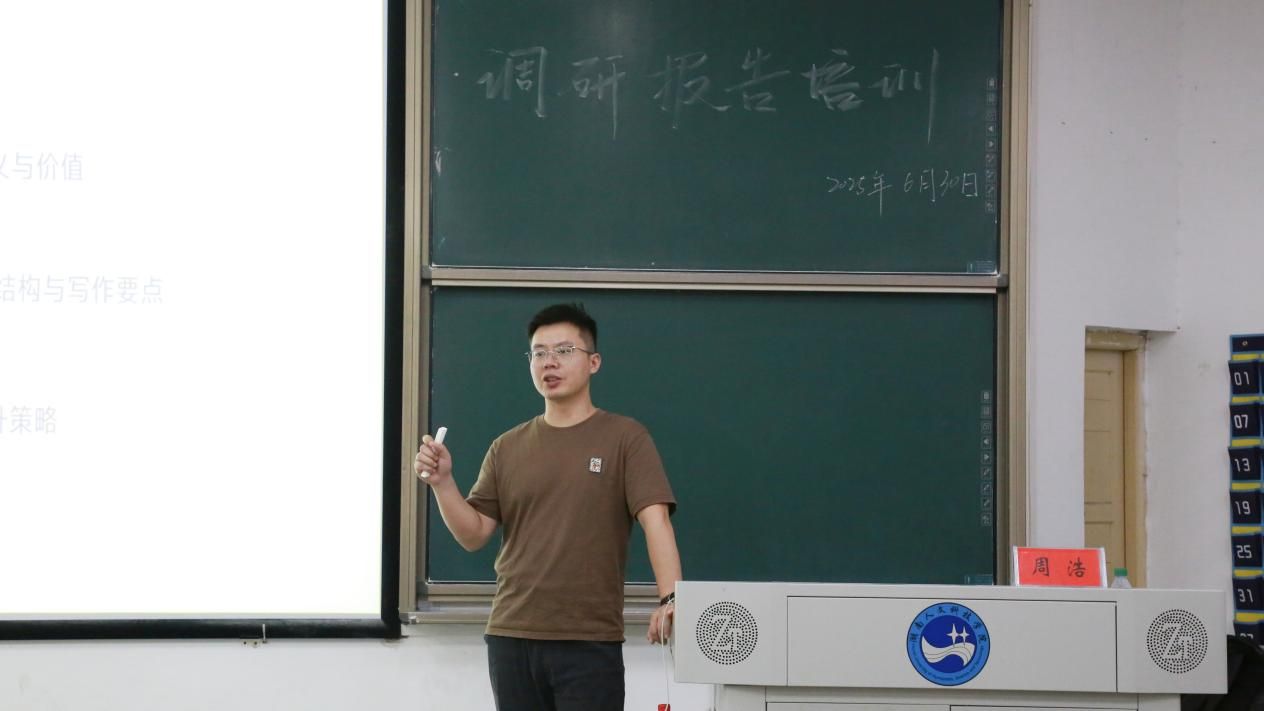 培训中,周浩博士围绕“调查报告的意义与价值”、“核心结构与要点”、“写作技巧与策略”三大维度,系统讲解了调研报告的撰写方法。他首先指出,撰写报告不仅是系统梳理实践、深度反思与提炼成果的重要方式,更是锻炼学术研究与写作能力的有效途径。接着,他重点讲解了报告的核心结构,包括标题、摘要、主体、结论与建议等部分的撰写要点。在写作技巧方面,周博士结合案例,传授了信息收集筛选、数据分析、语言表达等实用方法,强调要提升报告的逻辑性、客观性与说服力。他总结道,优秀报告就是用准确简明的语言,系统梳理实践见闻、深入反思并提炼价值。