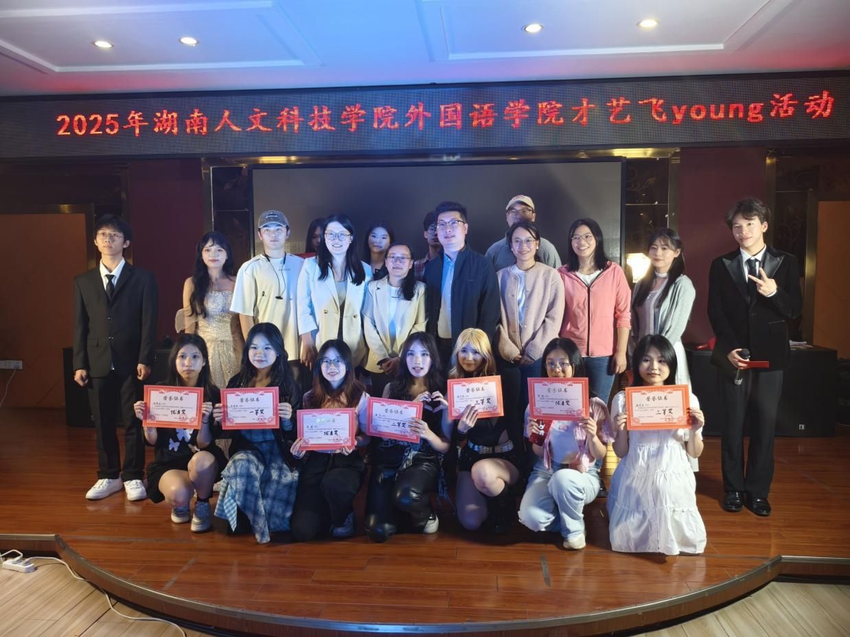 外国语学院党总支书记李霞、校团委挂职副书记何松、外国语学院党总支副书记罗嗣安及学工办各位老师出席本次活动并担任评委。比赛中选手们各展所长,角逐激烈,现场氛围持续高涨。经过评委们的综合打分,最终肖慧琳、李金玲同学获得一等奖,徐旸、颜紫麒同学获得二等奖,魏子玉、罗家威等4名同学获得三等奖,唐浩然、李益婷等5名同学获得优秀奖,颜紫麒同学获得最佳人气奖。