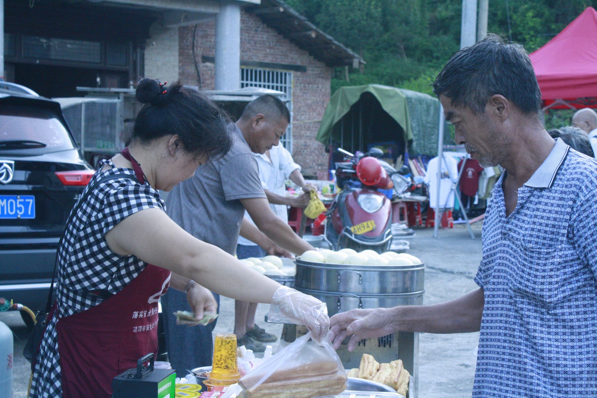 村民们穿梭于热闹的摊位间,或围观杀鱼摊主行云流水的操作,或被炸鸡架的香气引得垂涎,还不时与水果摊主亲切攀谈。集市里人潮涌动,处处都展现着最质朴、鲜活的人间烟火。