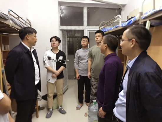 2020年10月11日晚,能源与机电工程学院党总支书记彭辉、党总支副书记伍铁斌带队,全体辅导员、班主任老师以及学生会干部参与,对KY官网新生宿舍进行了巡查和慰问,全面了解学生到校住宿情况,落实平安校园建设,营造学校良好的学习工作氛围。