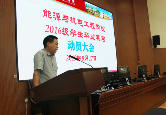9月17日晚上,能源与机电工程学院在匠成楼报告厅召开了2016级能源与机电工程学院毕业生实习动员大会。学校教务处、校地校企合作处领导,能机学院院领导、教研室主任、实习带队教师以及毕业班班主任和400多名毕业班学生参加了本次大会。