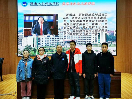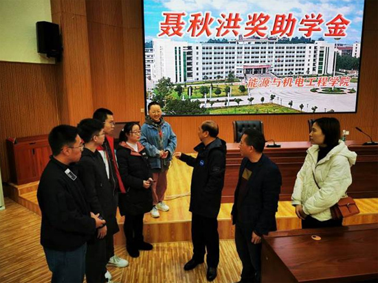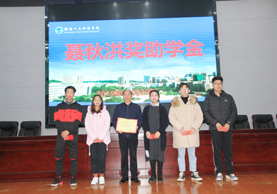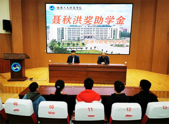 聂秋洪奖助学金由爱心校友聂秋洪先生2019年设立,每年资助1万元,用于资助5名品学兼优的家庭贫困学生,旨在缓解困难学生的经济压力,激励莘莘学子的鸿鹄之志,培养有理想、有追求、有担当、有作为、有品质、有修养的大学生。颁奖仪式上,聂秋洪先生结合自身毕业后的成长历程,鼓励同学们从容面对人生中的逆境,用一生的努力在为中华民族伟大复兴的奋斗中实现自己的人生价值。颁奖结束后,聂秋洪先生与受资助的5位学生互换联系方式,希望和同学们保持良好地沟通交流,形成良性反馈,更好地为同学们提供帮助。