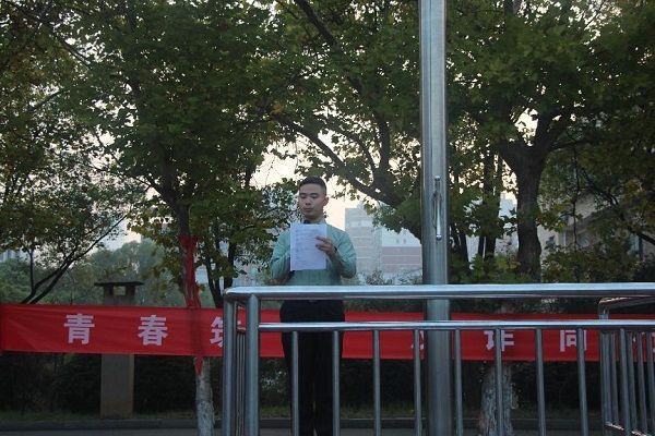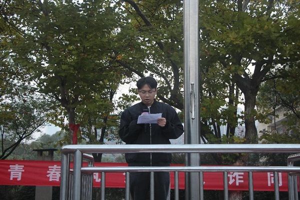 在庄严的国旗下,曾服役于中国人民解放军北京卫戍区66381部队的21级自动化三班马文烨同学,从大学生为什么要参军入伍、同学们对参军入伍有哪些顾虑、参军入伍能收获什么,以及参军入伍的优惠政策四个方面细致入微地让全体师生对军旅生活有了进一步的了解。他结合自身的从军历程,用青春、活泼、积极、奋发的言辞,让同学们深刻体会到他在从军生涯中的历练,让同学们了解到青春军旅生活的魅力。最后,他号召同学们厚植爱国之情,树立报国之志,让青春不留遗憾,为国防事业贡献力量。