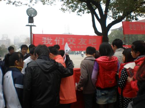 2010年11月26日中午,通信与控制工程系团总支在第一食堂前举办了“我们交友吧”团活动。