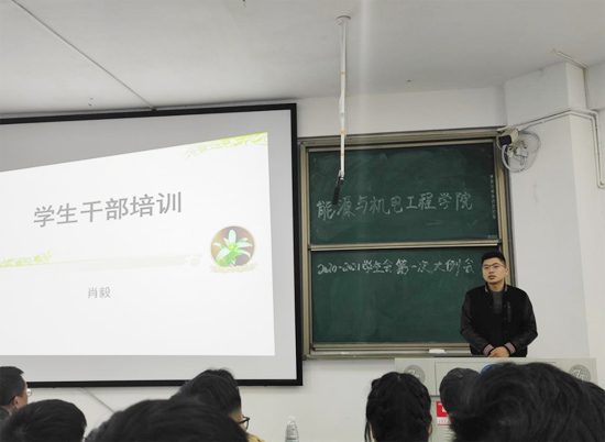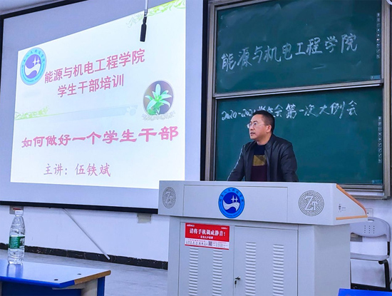 为全面提高学生干部的思想政治综合素质和相关业务工作能力,2020年11月,能源与机电工程学院举办了学生干部培训的一系列讲座。学院党总支书记彭辉、副书记伍铁斌、全体辅导员和全体学生会干部、各班班长、团支书及宣传委员参加了本次培训。