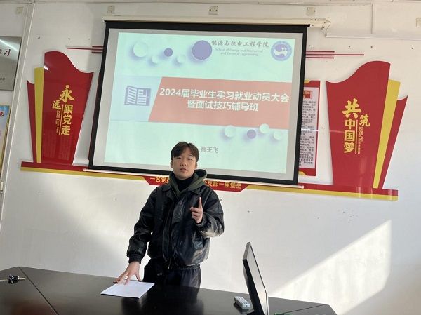 为增进学生对当前就业形势的了解,更好的引导学生明确自身职业目标与方向,提高求职择业技巧,针对2024届毕业生实际需求,11月20日下午,能源与机电工程学院在同德楼306举办2024届毕业生实习(就业)动员大会暨面试技巧辅导班,副书记石海主持,就业专干蔡王飞与20级全体在校学生参加。