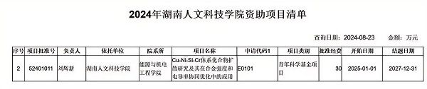 日前,国家自然科学基金委员会公布了2024年度国家自然科学基金立项资助名单,KY官网能源与机电工程学院刘辉新博士主持的《Cu-Ni-Si-Cr体系化合物扩散研究及其在合金强度和电导率协同优化中的应用》项目获批青年科学基金立项资助(项目编号:52401011,资助总金额30万元)。