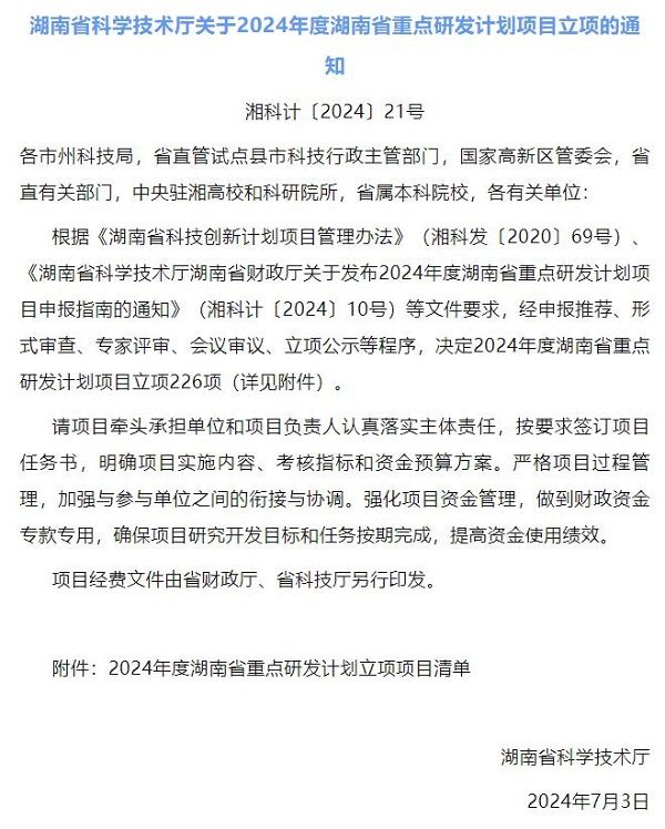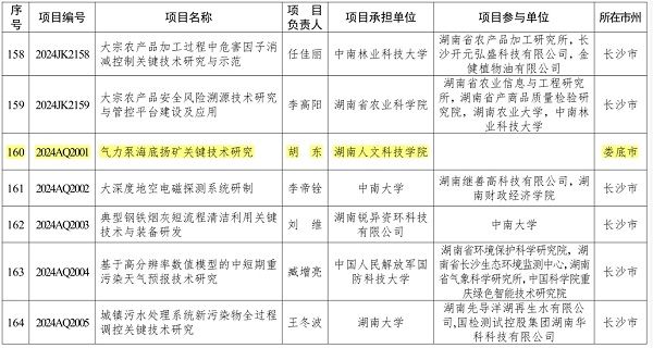 近日,湖南省科技厅发布了《关于2024年度湖南省重点研发计划项目立项的通知》,KY开元集团官网入口水射流团队胡东教授牵头申报的课题“气力泵海底扬矿关键技术研究”(项目编号:2024AQ2001)获立项资助。