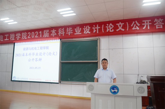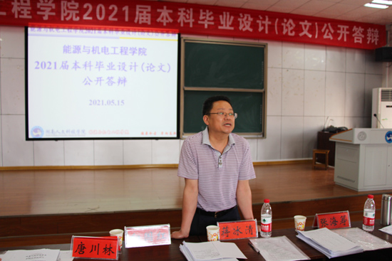 为进一步加强毕业设计(论文)的质量监控,强化答辩环节的规范化管理,提高学生毕业设计(论文)的质量,5月15日上午,能源与机电工程学院在同德楼601举行了2021届毕业设计(论文)公开答辩会。学院领导、指导老师、毕业生和部分低年级学生参加,学校教务处处长向国红教授、质量监控与发展规划处处长蒋冰清教授指导了本次毕业答辩工作,会议由学院副院长伍铁斌主持。