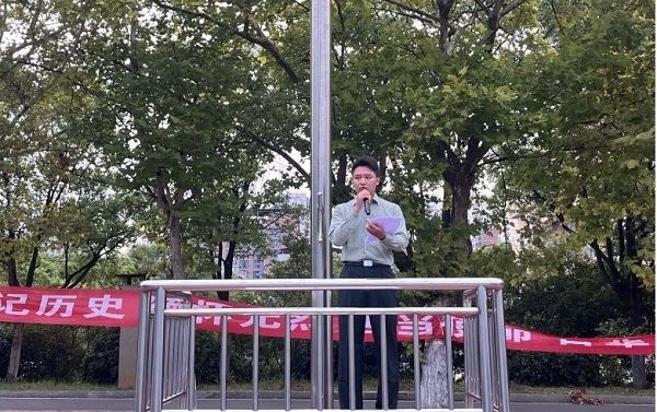 研究生代表马文烨以《铭记血火历史,奋斗崭新征程》为题发表了慷慨激昂的爱国主义演讲。他回顾了中华民族艰苦奋斗的历史,缅怀革命先烈的丰功伟绩,呼吁同学们牢记历史教训,传承先烈精神,以青春之我建设青春之中国,在新时代征程中展现青年担当。