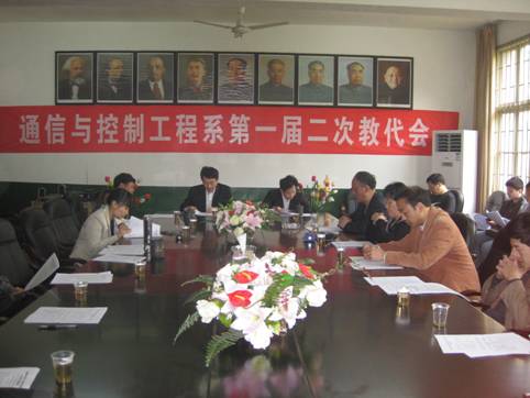 首先大会召开了预备会议,接着,在庄严的国歌声中,大会正式会议隆重召开。系党总支书记谭甲凡代表系主任作了《凝心聚力抓建设 励精图治谋发展 谱写通控系发展新篇章》的工作报告,报告回顾了2010年系部工作的主要成绩:我系不断强化本科意识,积极推进教育教学改革,坚持练内涵、强基础的发展思路,坚持求务实、做扎实的工作本色,坚持敢创新、要发展的奋斗精神,全系各项工作稳步推进,党建工作有特色、教学质量有提高、产学研工作有突破、学生管理有方法、招生就业有成绩。在2010年我系获得了学校先进单位、教学先进单位,学生管理先进单位,招生就业先进单位,优秀团总支等多项荣誉。2011年是“十二五”的开局之年,报告对2011年的主要工作作了部署,积极开展好“创先争优”工作;做好课堂教学文章,提高教学质量;深化产学研工作,提高学生的实践创新能力;提高学生管理水平;做好招生就业工作;构建和谐系部。