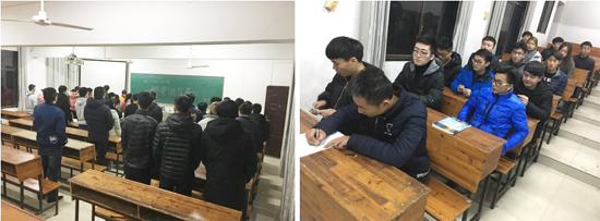 2017年12月21日晚8:30,在学而楼209教室,能源与机电工程学院学生第二党支部书记曾增日,学生第三党支部书记肖毅和学生第四党支部书记邓景文联合组织全院学生党员开展 “诚信考试我带头”的诚信教育活动。邓景文老师组织学习了《KY开元集团官网入口考试违规处理办法(院政发〔2012〕71号)》、《KY开元集团官网入口课程考核管理办法(院政发〔2010〕49号)。提醒学生党员积极备考,自觉接受期终的考试检阅,考出自己的真实水平。强调党员在带头遵守考试纪律的同时要教育身边的同学自觉遵守考试纪律,以自己的行动来营造良好的考风。肖毅老师宣读了诚信考试承诺书的内容。各位支部书记组织各支部党员签订了诚信考试承诺书。(邓景文供稿)
